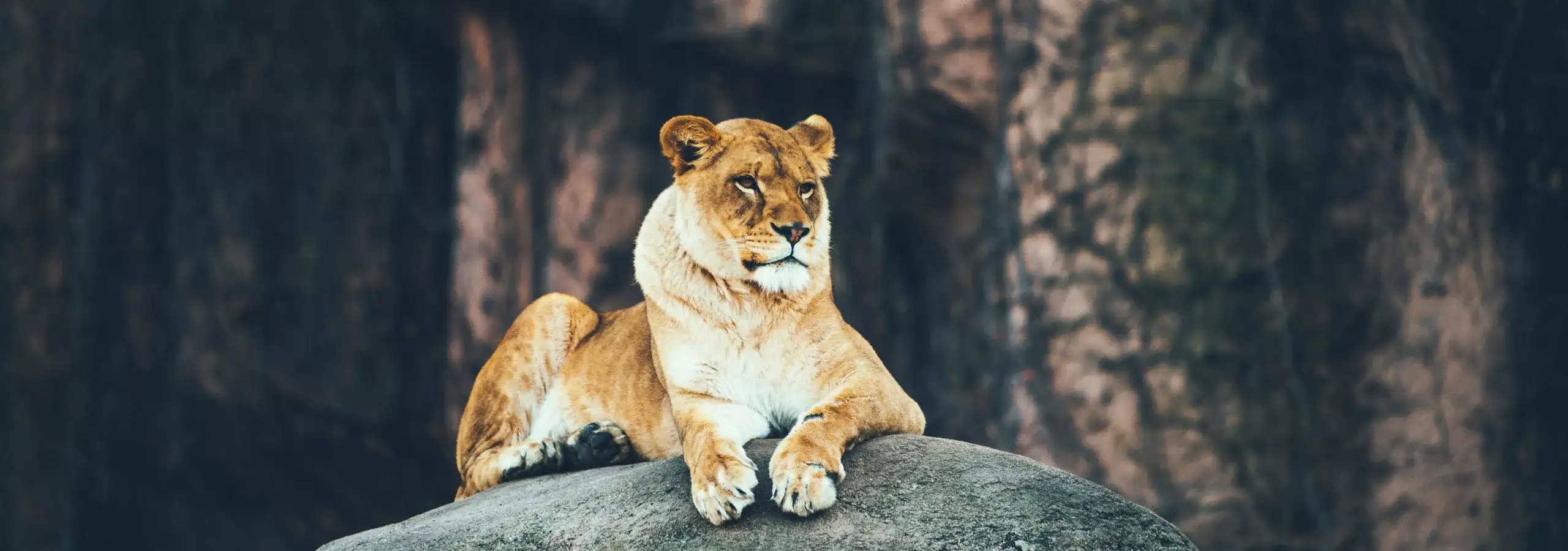 HomeLEGOLAND Florida: A lion is sitting on top of a rock.