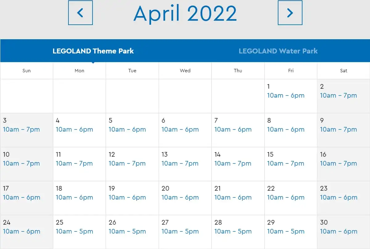 LEGOLAND Florida Theme Park April 2022 Hours