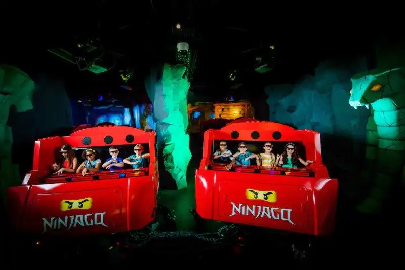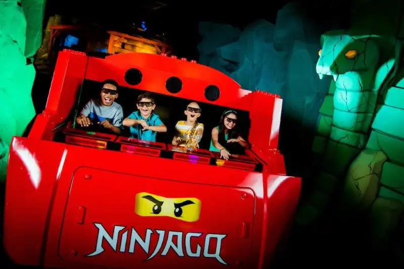 - LEGO NINJAGO The Ride – A state-of-the-art “dark ride” where guests score points using ninja hand moves to blast animated fireballs, lightning and more at waves of 3D villains. Children under 48 inches tall must ride with a responsible person 48 inches or taller who can ensure their safety.